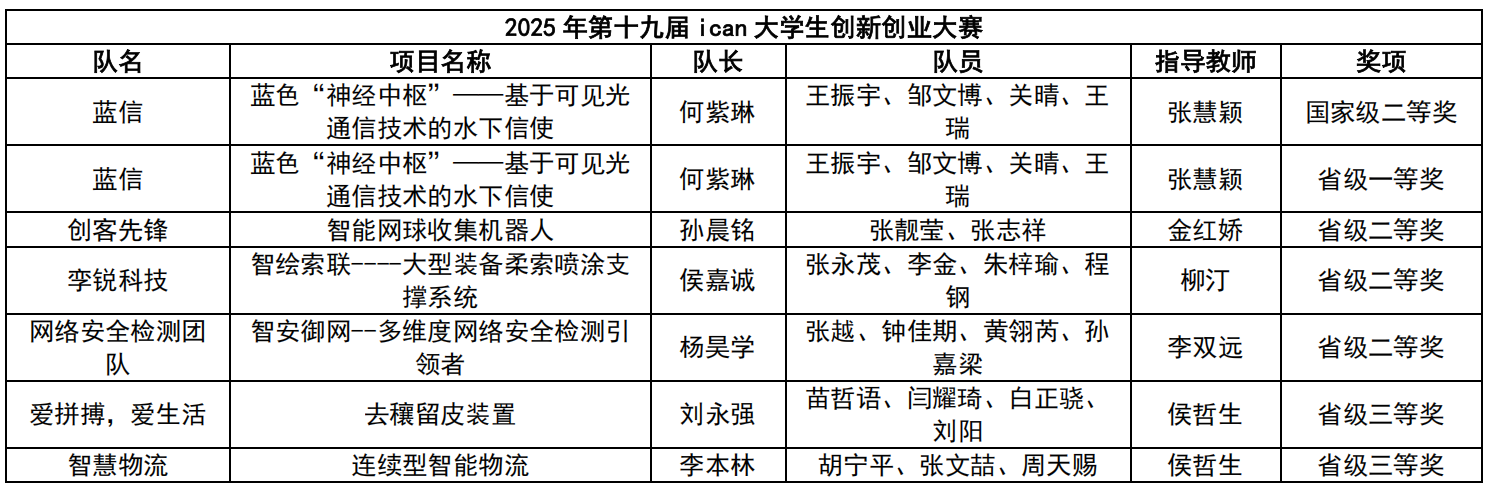近期,2025年iCAN大学生创新创业大赛各赛段赛事陆续落下帷幕。我校参赛学子凭借锐意创新的思维、扎实的专业功底和出色的实践能力,在全国及省级赛场的激烈角逐中脱颖而出,斩获国家级二等奖1项、省级一等奖1项、省级二等奖3项、省级三等奖2项,再度彰显了我校创新创业教育的扎实成效与学生的综合素养。